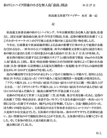 秋高連文体部アドバイザー水沢さんからの寄稿です。