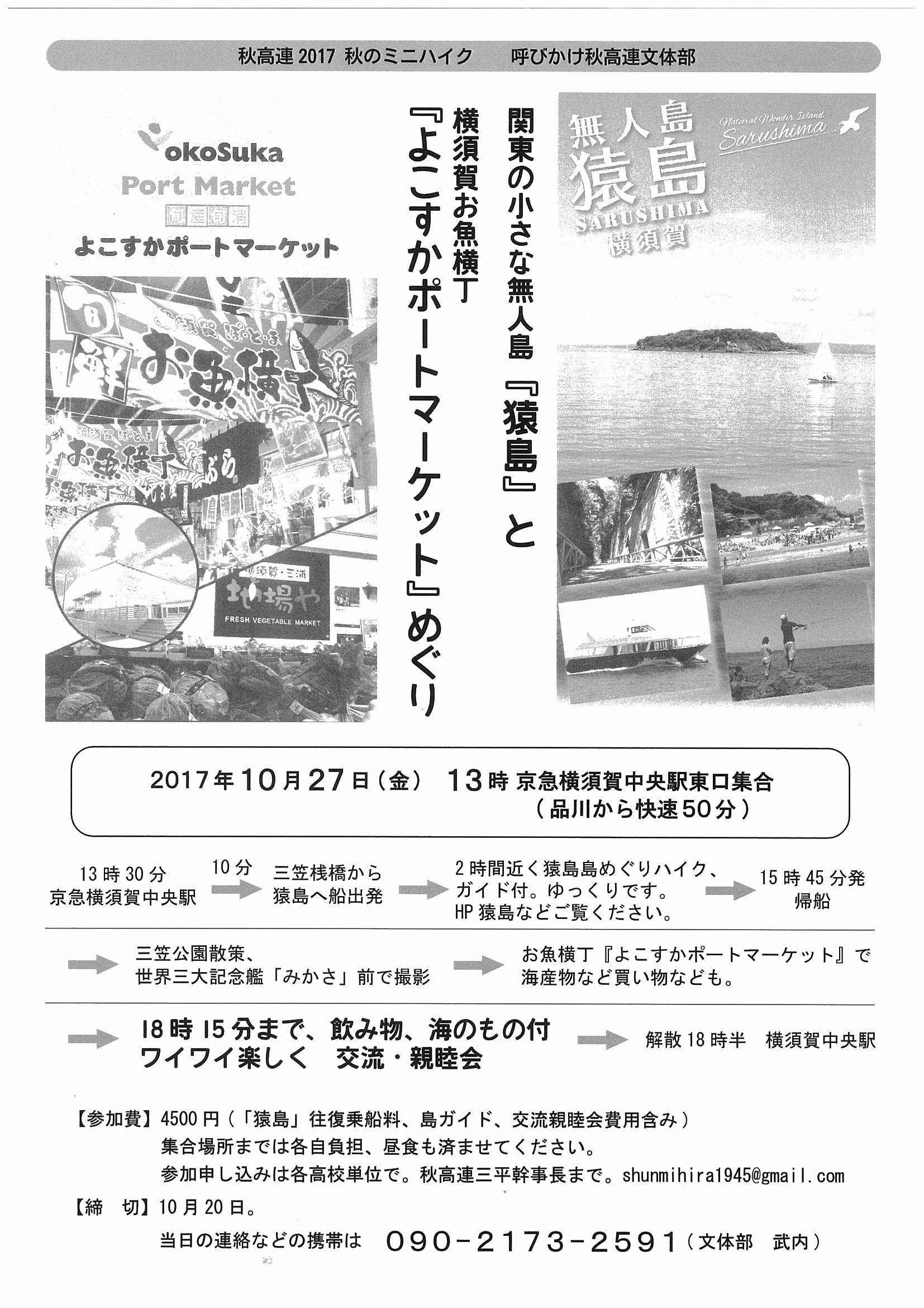 参加費 4500円(「猿島」往復乗船料、島ガイド、交流親睦会費用含み)