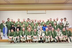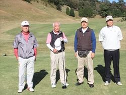 11月17日(金)から1泊2日の日程で秋高連・第五回親善ゴルフコンペ。あんこう鍋を囲む忘年会を楽しみました。12校42名(ゴルフ11校39名)参集し、開催しました。貸し切りバス(丸の内)に22名が定刻通り出発しゴルフ場に8:45に到着しマイカー組も予定通り到着しました。日立ゴルフクラブの受付正面に祝・大歓迎秋田県人の看板が貼られており、コンペムードが高まりました。日が暮れるのが早くなり日没を心配しましたが、スタートを13分早め、ランチタイムを10分縮め、かつ好天気に恵まれ無事にホールアウトできました。コースはアップダウン崖など厳しく、グリーンが海に向かって速く皆さん、パターに四苦八苦されたと思います。高台から市内と太平洋を望む水平線の景観美が素晴らしく、また至る所に寒椿が咲き。桜・どうだんつつじの紅葉と渋柿が見ごろを迎えておりました。プレーに夢中で余裕なかったかもしれませんね。 優勝は日立市在住の大谷日出春さん(中央高校31年卒)でしたコースを熟知した地元の利です今後も参加願います。上位3名が同ネットとなり年齢上位で勝ちました。準優勝は杉山孝治さん(秋工35卒)でした。ベスグロ賞は男子が出竹潔さん((大農42卒)女子が篠崎たま子さん(雄物川46卒)でした。予定通り4時30分に 、宿泊先の国民宿舎「鵜の岬」迎えの大型バスに乗り込み、すぐに温泉大浴場でゆったり浸りオーシャンビューの景観とゴルフの疲れを癒しました。宴会には、42名が出席しアトラクションは横手工業高の講談師・柴田正四郎氏が正装し「筑波山ガマの油売り口上」を熱演、乾杯の練習ビールを飲みながら声を掛け合い盛り上がりました。秋高連の岸本会長(秋田商高)のご発声で正式に乾杯後に、ゴルフの表彰式を進めた。初参加に自己紹介していただき、フリーミーテングをしながらカラオケを行い、喉に自信ある方々が次々に持前の歌披露し、プロ顔負けであった。歌に併せてダンスなど踊り、ステージを賑やかにしてくれました。最後にアカペラで加藤義雄さん(秋工31卒)が美空ひばりの歌を独特の声で歌い皆さんから拍手喝采でした。料理の品数も多くあんこう鍋など美味しくいただきました。