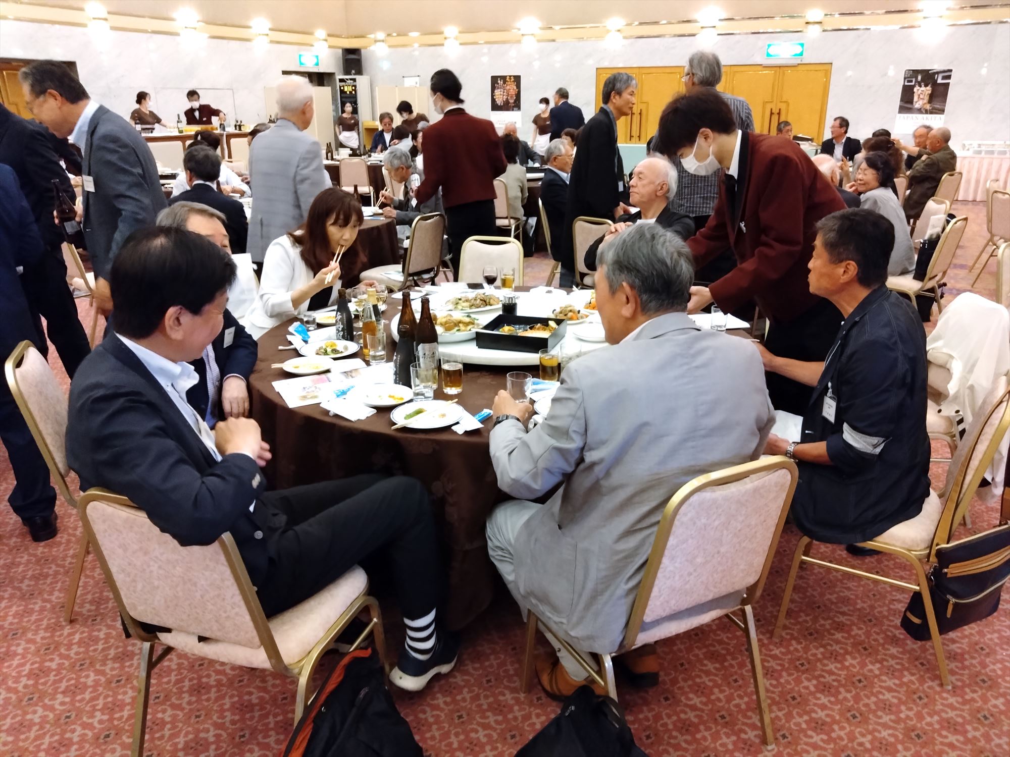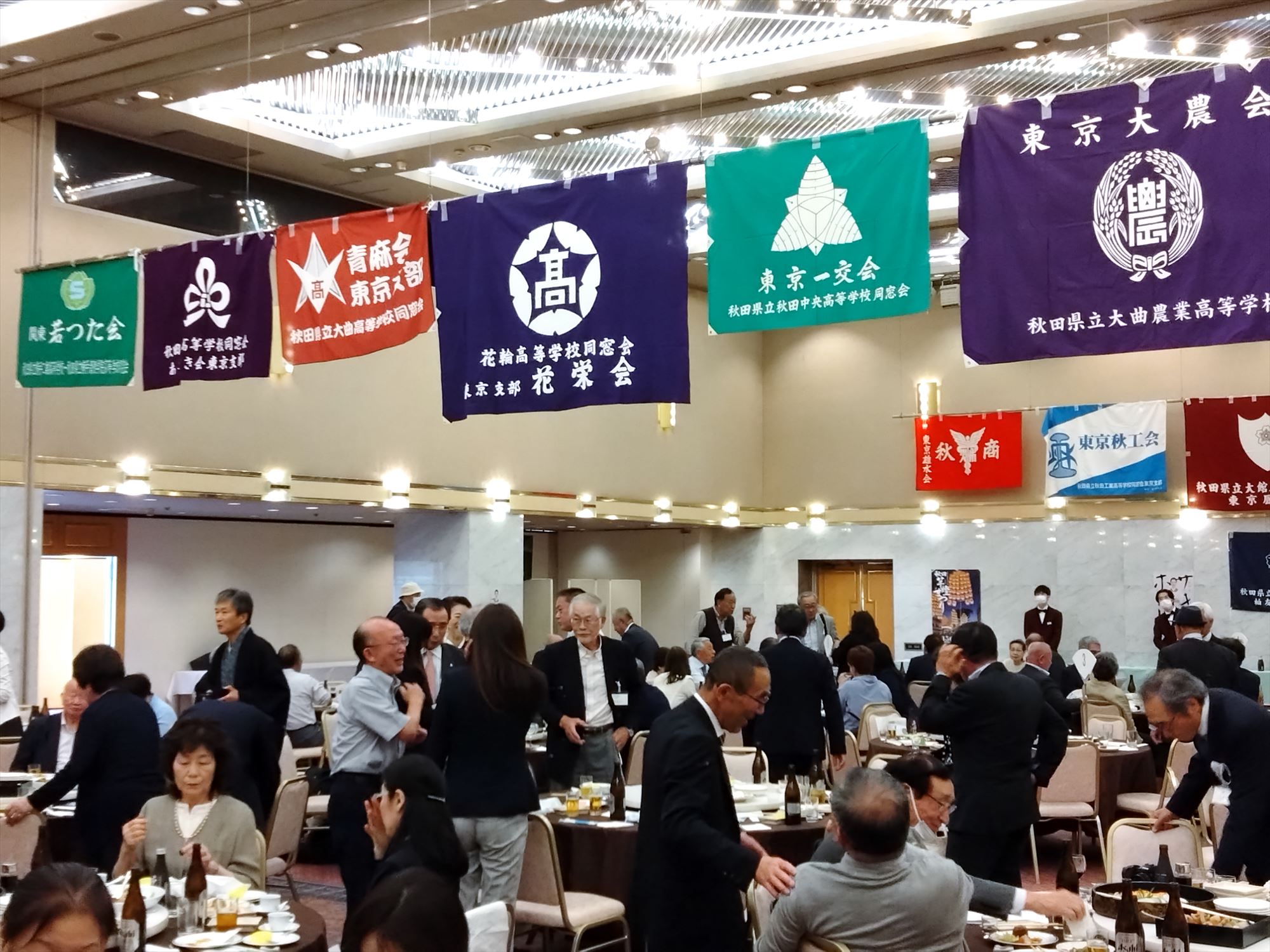 興奮冷めやらぬままに時間が経過、応援団長の能代工高、大淵清一さんのエールで予定時間となりました。 来賓・招待者含め26校の同窓会参加者合計130名の入場者でした。