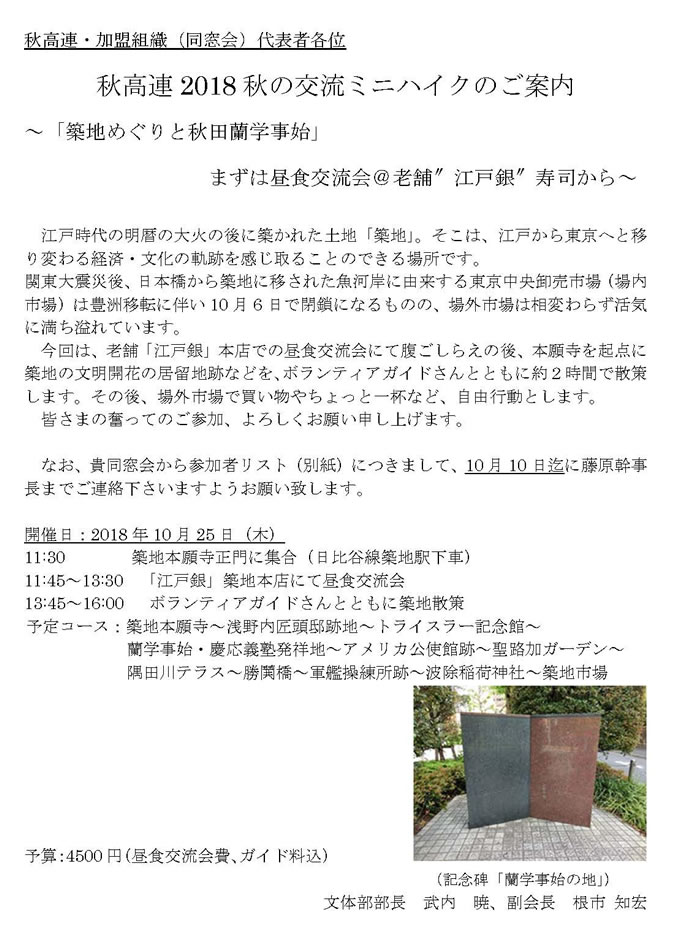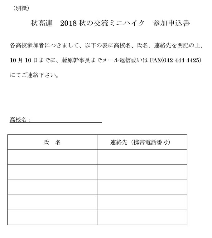 秋高連2018秋の交流ミニハイクのご案内