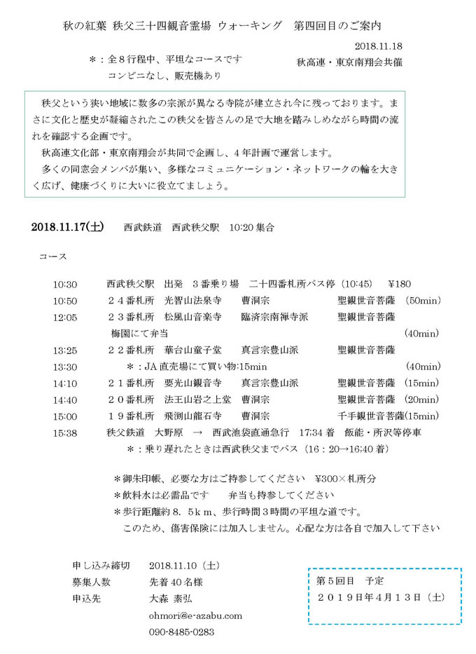 第4回秩父三十四観音霊場ウォーキングのご案内