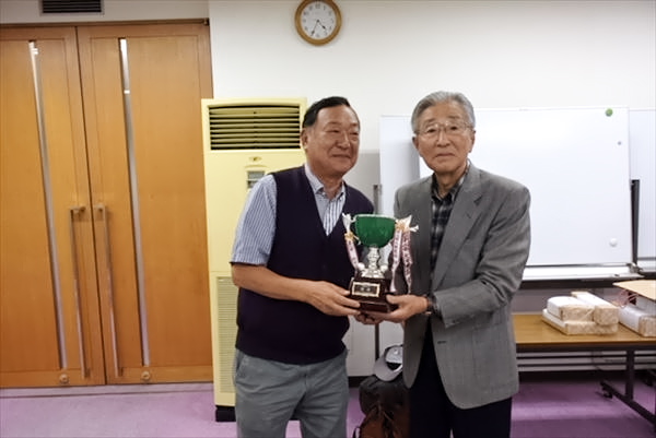 昨年の雨とは打って変わり、当日は朝から絶好のゴルフ日和となり、暖かな日差しの中で、普段の実力をおもうぞんぶん発揮されたことと思います。プレー終了後は、各チームごとに談笑しながらの盛大なパーティが催されました。 表彰式では秋高連望月会長の挨拶があり、各校の垣根を越えて、来年もまた、元気でお会いしましょうと話されました。 優勝者は伊藤和郎氏(秋田商業高校)で、準優勝は佐藤和利氏(横手工業高校)、第3位は武藤三郎氏(大曲工業高校)でした。ベスグロ賞は三平俊悦氏(秋田工業高校)でした。 紙面をお借りして、世話人をお願いしました水沢誠一氏(秋田中央高)、三平俊悦氏(秋田工高)、また、源氏山ゴルフクラブをご紹介いただきました佐藤鉄三郎氏(秋田工高)の各氏に厚く御礼申し上げます。