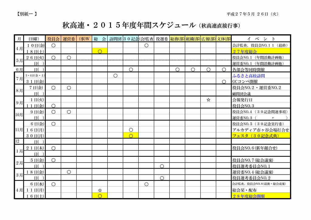 秋高連は役員会及び運営委員会を定期開催して事業計画等を練り上げ、春の総会で年間事業を確定して実行する方式で、以来29年の実績を積み重ねて来ました。