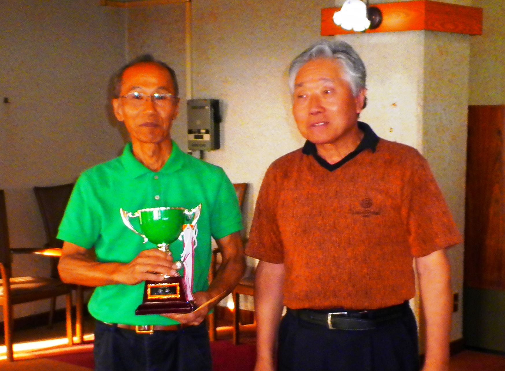 秋高連ゴルフコンペを開催しました。名 称 : 秋高連・第1回愛好者ゴルフコンペ 日 時 : 平成25年 7月19日(金) 10時〜 場 所 : 東京駅送迎バス→常陸太田市・日立高鈴ゴルフクラブ 内 容 : 18ホールストロークプレー(ニューペリヤ方式) 参加者 : 8組32名…参加者名簿と戦績はこちらです。 参加費 : 参加費 40,00円、プレー費 10,500 円(バス代込み) アクセス: 東京駅からゴルフ場往復送迎サロンバス利用 総 評 : 初の開催で8組フルエントリー(16校参加)。 この時期照らず降らずの絶好のプレーひよりでゴルフを満喫。 初優勝は井島捷之氏(秋田工高)でした。以降継続開催の予定ですので愛好者は予め事務局にエントリーして頂くと次回からは事務局から開催案内をダイレクトメールしますので、奮ってエントリーしてご参加下さい。 往復送迎サロンバスの利用者は21名で帰りの打上げは賑やかで相当な盛上がりの中親睦を深められた様子です。 | |