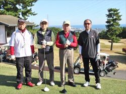 11月17日(金)から1泊2日の日程で秋高連・第五回親善ゴルフコンペ。あんこう鍋を囲む忘年会を楽しみました。12校42名(ゴルフ11校39名)参集し、開催しました。貸し切りバス(丸の内)に22名が定刻通り出発しゴルフ場に8:45に到着しマイカー組も予定通り到着しました。日立ゴルフクラブの受付正面に祝・大歓迎秋田県人の看板が貼られており、コンペムードが高まりました。日が暮れるのが早くなり日没を心配しましたが、スタートを13分早め、ランチタイムを10分縮め、かつ好天気に恵まれ無事にホールアウトできました。コースはアップダウン崖など厳しく、グリーンが海に向かって速く皆さん、パターに四苦八苦されたと思います。高台から市内と太平洋を望む水平線の景観美が素晴らしく、また至る所に寒椿が咲き。桜・どうだんつつじの紅葉と渋柿が見ごろを迎えておりました。プレーに夢中で余裕なかったかもしれませんね。 優勝は日立市在住の大谷日出春さん(中央高校31年卒)でしたコースを熟知した地元の利です今後も参加願います。上位3名が同ネットとなり年齢上位で勝ちました。準優勝は杉山孝治さん(秋工35卒)でした。ベスグロ賞は男子が出竹潔さん((大農42卒)女子が篠崎たま子さん(雄物川46卒)でした。予定通り4時30分に 、宿泊先の国民宿舎「鵜の岬」迎えの大型バスに乗り込み、すぐに温泉大浴場でゆったり浸りオーシャンビューの景観とゴルフの疲れを癒しました。宴会には、42名が出席しアトラクションは横手工業高の講談師・柴田正四郎氏が正装し「筑波山ガマの油売り口上」を熱演、乾杯の練習ビールを飲みながら声を掛け合い盛り上がりました。秋高連の岸本会長(秋田商高)のご発声で正式に乾杯後に、ゴルフの表彰式を進めた。初参加に自己紹介していただき、フリーミーテングをしながらカラオケを行い、喉に自信ある方々が次々に持前の歌披露し、プロ顔負けであった。歌に併せてダンスなど踊り、ステージを賑やかにしてくれました。最後にアカペラで加藤義雄さん(秋工31卒)が美空ひばりの歌を独特の声で歌い皆さんから拍手喝采でした。料理の品数も多くあんこう鍋など美味しくいただきました。