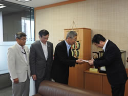 5月26日の令和元年度秋高連フェスタでチャリティ募金にご協力いただいた皆様の浄財を秋田県事務所に届けて来ました。いまや恒例になっていますが、秋田県事務所を通して、秋田県高等学校体育連盟と秋田県高等学校文化連盟にそれぞれ5万円を寄付してきました。