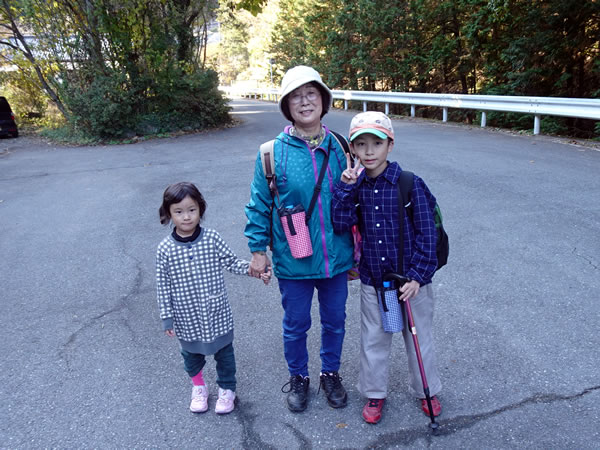 出発までまだ時間があるので15分で回れるとの誘いを受けて、寺の裏のトレッキング道を子ども二人を含む7〜8人で上りました。ところがこれがすごい登り坂で、帰り道は道とはいえない崖坂をロープを伝って降りて来ました。私的には今回の忘れられないハイライトになりました。